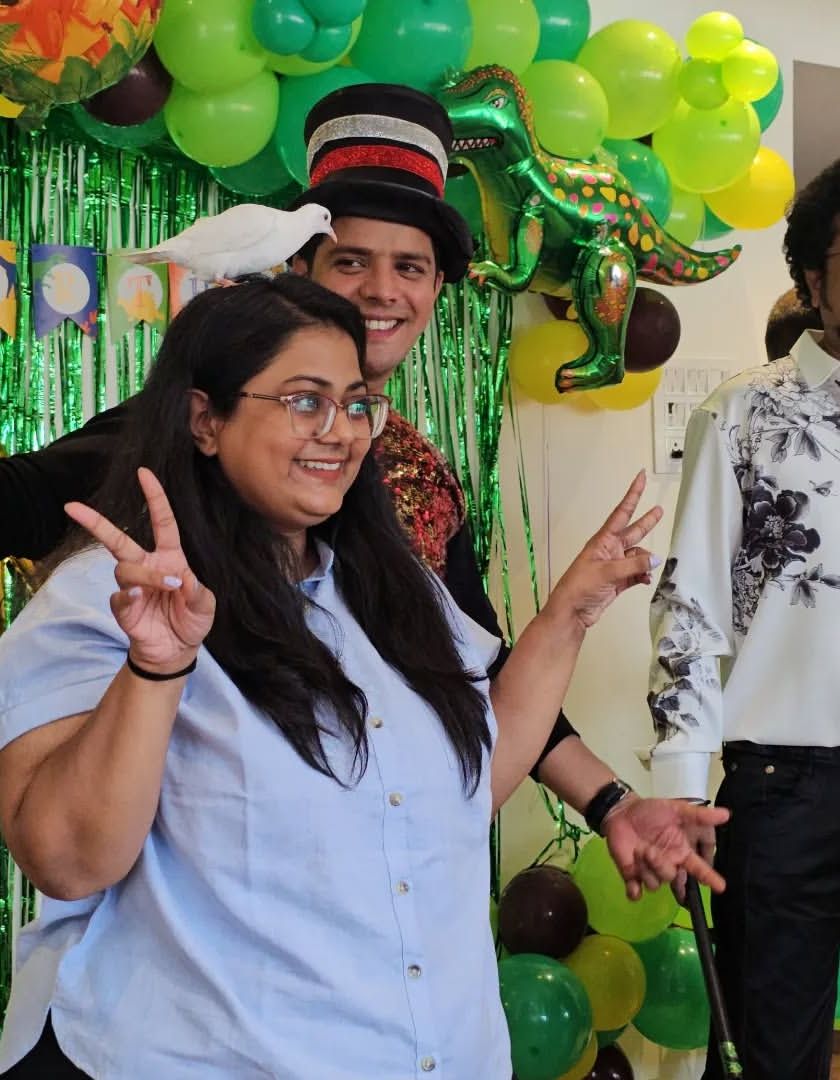 My parties are more than just magic; they are full of interactive and high-energy games! I host everything from musical chairs with a twist to fun couple games and dance sessions. I make sure everyone gets off their chairs and joins the dhamaal.