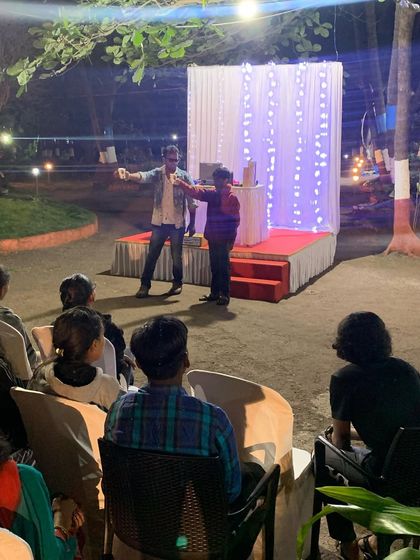 This is where I go big. My stage shows are designed for large audiences at events like annual corporate functions, award ceremonies, and high-energy college festivals. The performance includes grand illusions, dynamic fire magic, and patriotic finales that leave a lasting impact.