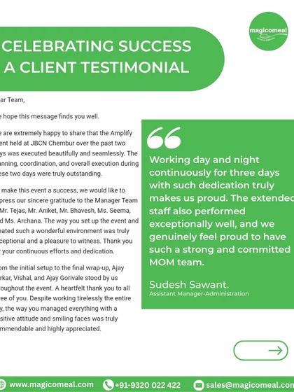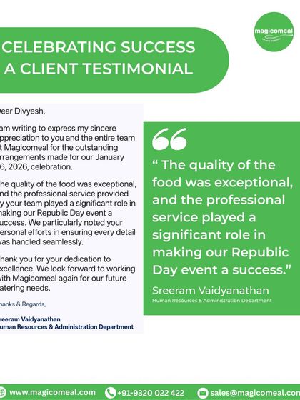 Magicomeal started with just a dream and a small kitchen, back in 2010. Food for us isn’t just khaana (food) – it’s happiness, it’s energy. We grew from serving a few plates to feeding thousands daily. Our journey? Full of hard work, some crazy moments, and lots of flavour. We celebrate every meal, every festival, every smile. It’s not just about the food, yaar – it’s about bringing people together.