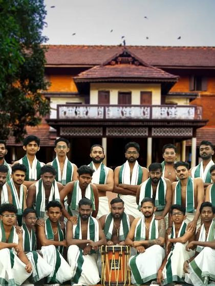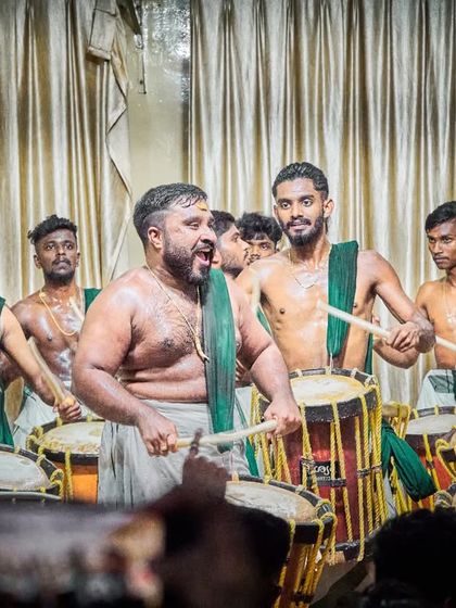We are Mahadeva Kalasamithi, not just a band, more like a gang of brothers, all tied together by our love for Chenda. Our name? Blessing from Mahadeva himself. Five years, so many wild shows - college fests, weddings, even Gujarat! Honestly, best times are after the show, chilling with the team. This is in our veins, not just a job. Seeing our students do their Chenda Arangetam, seeing our faces in the paper... nothing beats that feeling.