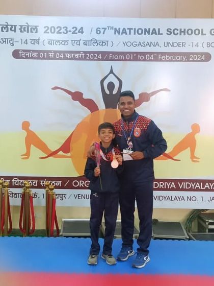Our students compete, and they win. Hum players banate hai... national level ke (We create players... at the national level). Vidhish Raut picked up bronze at the 67th National School Yogasana Competition and is a state champ in Artistic Yoga. Local events like Parle Mohatsav? We bring home gold and silver - Veer, Shivani, Yuvraj, and others. Hardik abhinandan (big congrats) to all.
