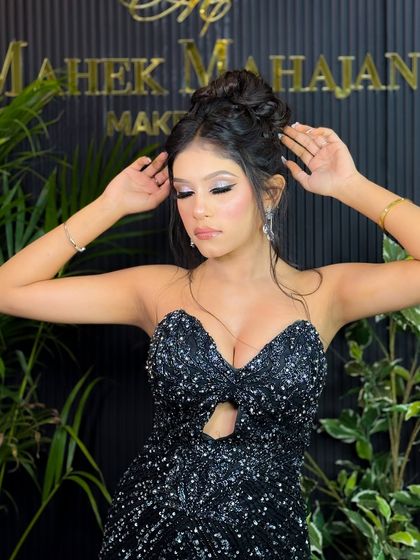 - Eyes: Soft smokey, shimmer, or cut-crease look with standard false eyelashes included.
