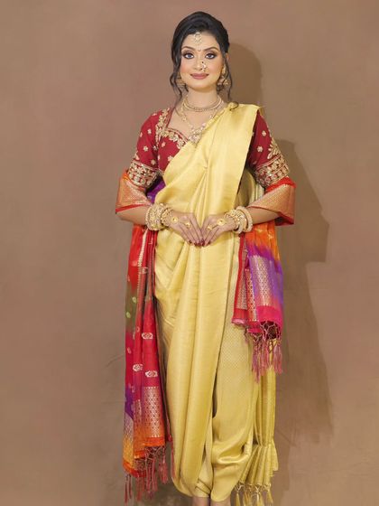 - Accessories: Includes designer blouse with adjustable hooks, matching waist belt (Kamarbandh), and elaborate tassels (Latkans).