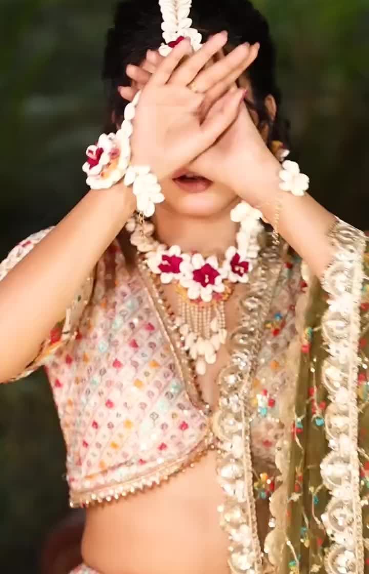 Look fresh and vibrant for your pre-wedding functions with my collection of floral and gota patti jewellery. These lightweight sets include everything from necklaces and earrings to haath phools and maang tikkas, perfectly matching your colorful Haldi and Mehendi outfits.