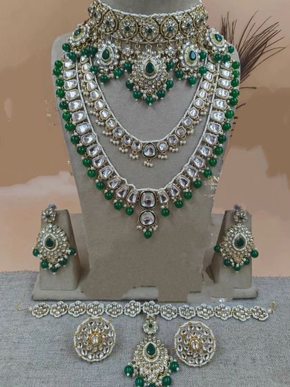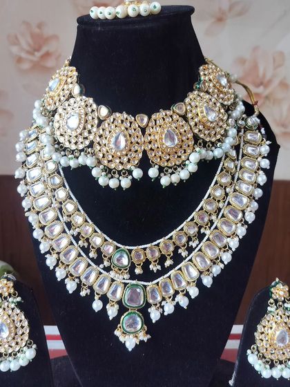 We offer an extensive collection of bridal jewelry for rent, featuring traditional and designer-inspired pieces. Our range includes kundan, polki, and Sabyasachi-inspired designs, along with specialized South Indian, Punjabi, and Bengali bridal sets.