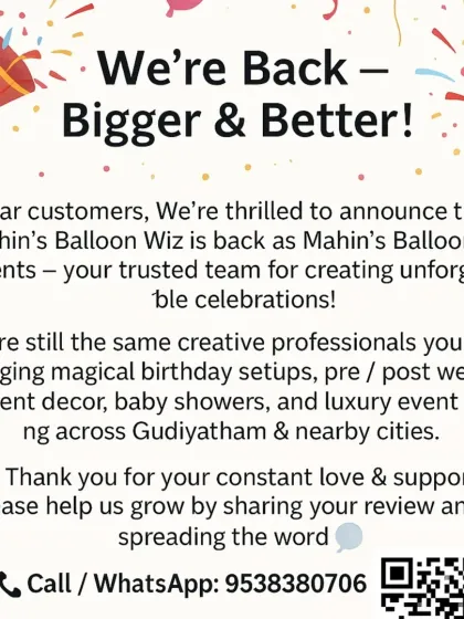 Events We Do - Birthdays, pre/post wedding, haldi, baby showers, and luxury event styling in Gudiyattam and nearby places.