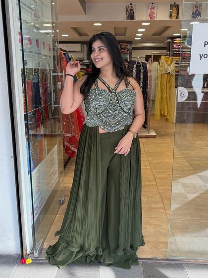 Find your perfect fusion look here. I have designed a unique rental collection of drape sarees, stylish cape sets, trendy tulip skirts, and corset outfits that are perfect for sangeet, cocktails, or any modern celebration.