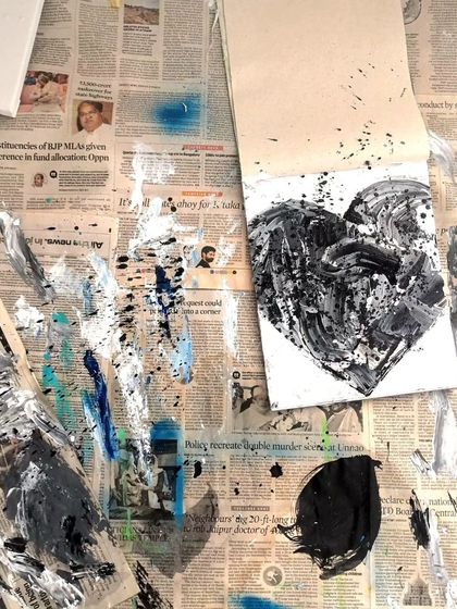 Beyond interactive stations, I also offer live painting demonstrations to add a unique artistic flair to your event. You can also commission a personal piece from my 'Hearts Collection', where I translate stories and emotions into abstract, textured art.