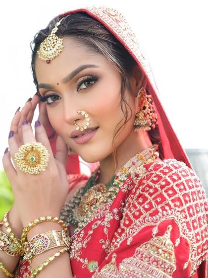 Glass Skin & Soft Glam - My thing is glowing, glass skin bridal look, soft glam for engagement, and classic red lehenga makeup for your D-day.