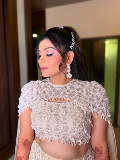 - Sangeet or cocktail night? Let’s go full glam - HD makeup, glittery eyes, maybe sleek Hollywood waves or a bold high ponytail with some OTT (over the top) hair accessories.