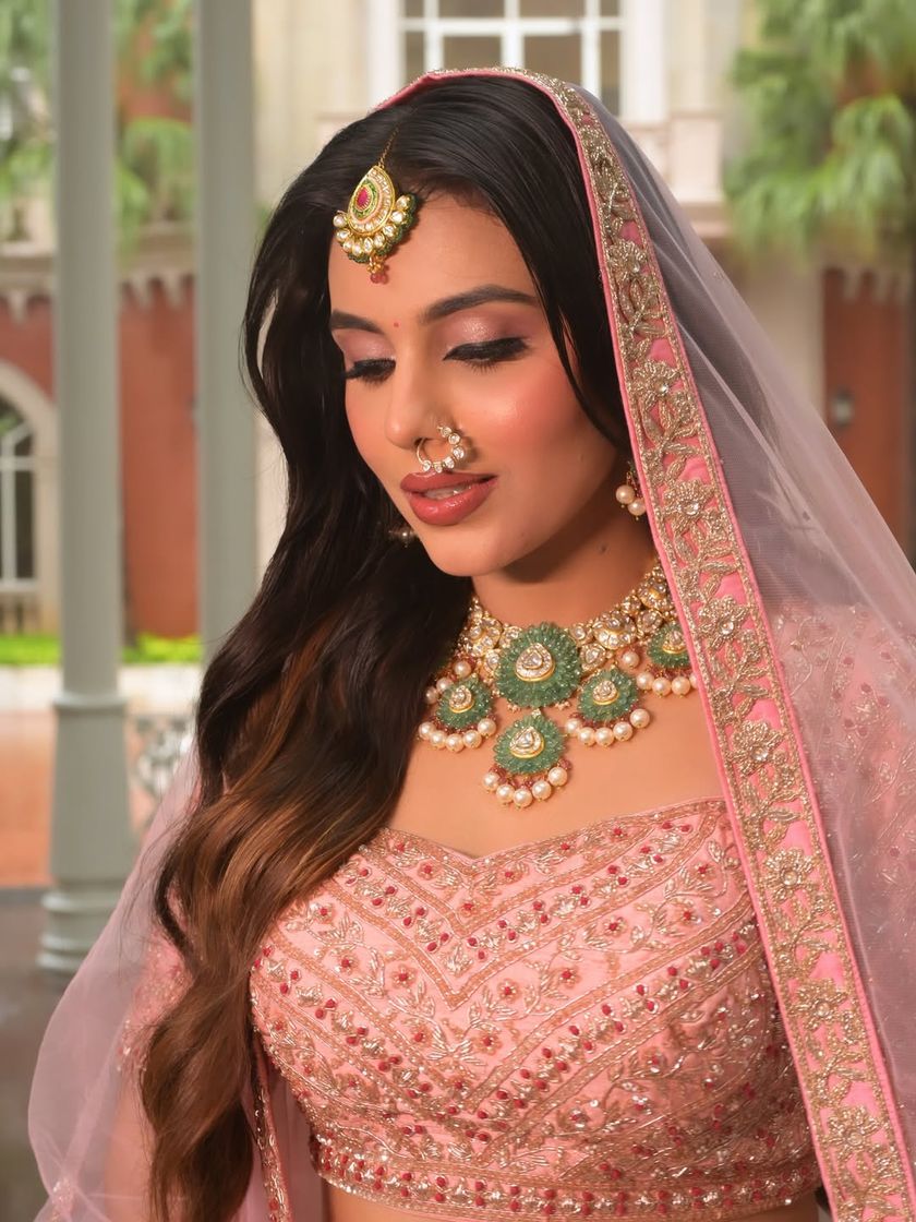 For daytime functions like Mehendi and Haldi, I love to play with color and create fun, fresh looks. My approach includes dewy skin that glows in the sunlight, vibrant eye makeup, and creative hairstyles featuring braids, waves, and playful accessories like gota patti, flowers, or even butterflies.