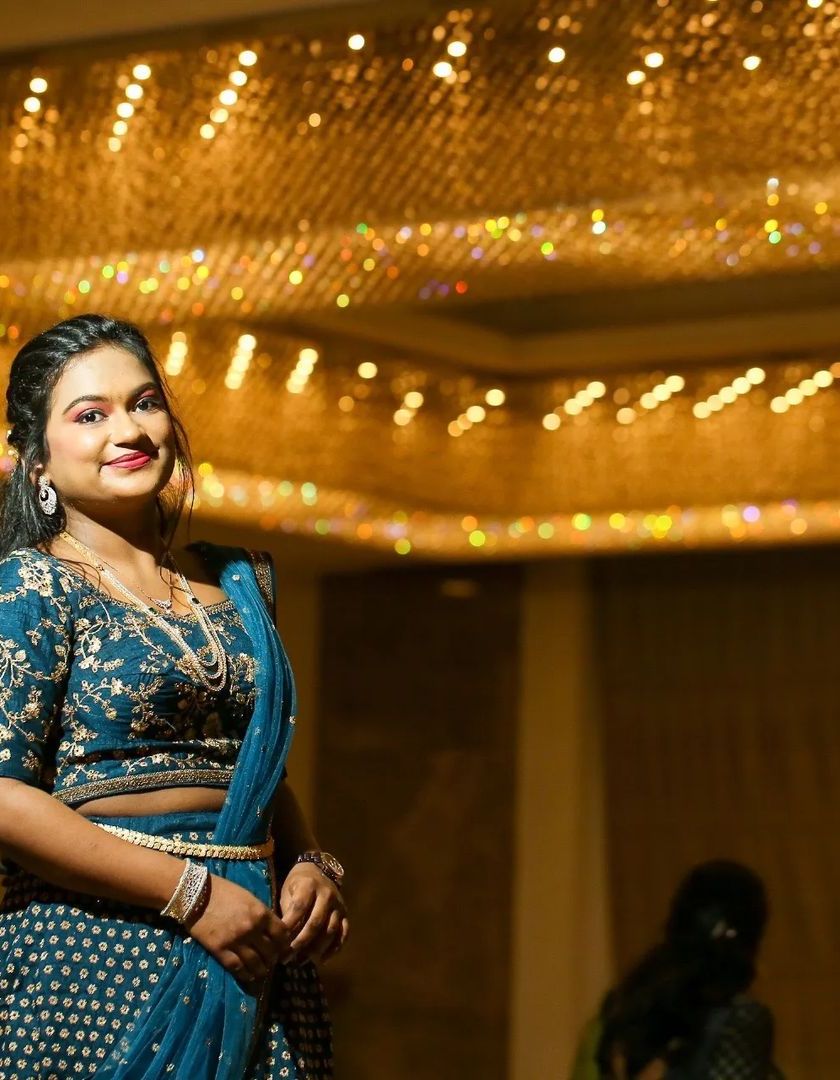 For the reception or sangeet, I create more modern and glamorous looks. This includes bold smokey eyes, defined contouring, and elegant hairstyles that pair perfectly with lehengas, gowns, or contemporary sarees for an evening of celebration.