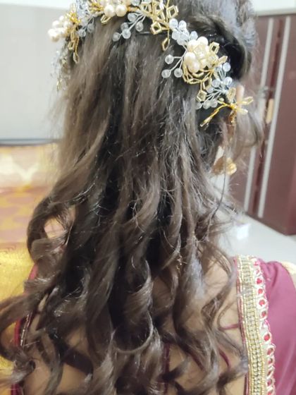 I work with various hair textures and lengths, creating styles that complement both traditional and modern bridal attire. My hairstyling services can be coordinated with saree draping for a complete bridal look.