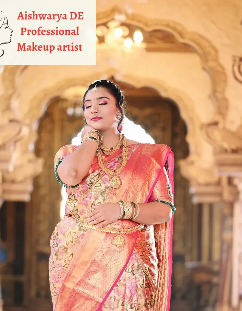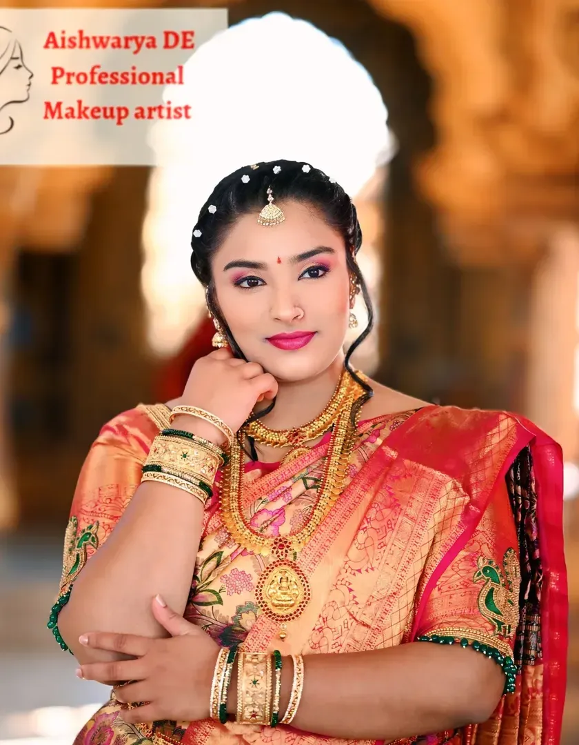 I specialize in creating authentic South Indian bridal looks that are both traditional and elegant. This includes everything from flawless base makeup that lasts through long ceremonies to perfectly defined eyes and draping heavy silk sarees.