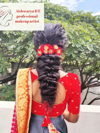 I create a variety of hairstyles to complete your look, from intricate traditional braids with jadanagam to modern messy buns and elegant updos. I love incorporating fresh flowers or hair accessories to match your outfit and the event's theme.
