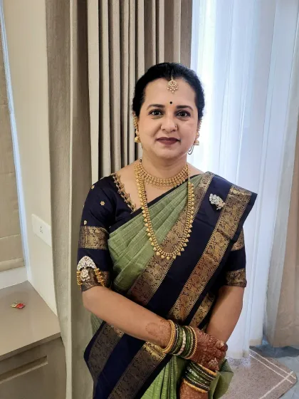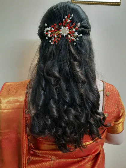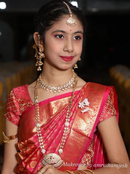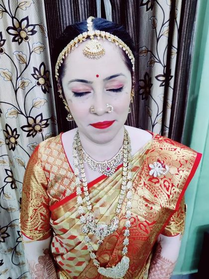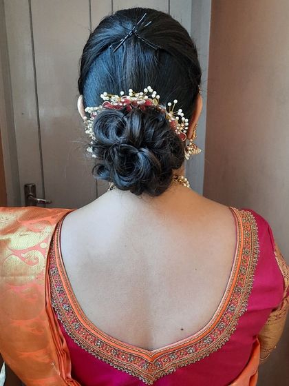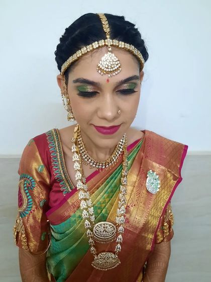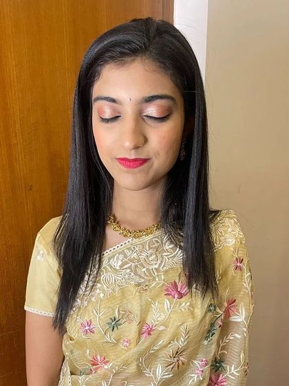 I'm a certified makeup artist and hairstylist, passionate about dolling up clients for their special day. I create personalized looks for any event, specializing in traditional South Indian styles and natural glow makeup.