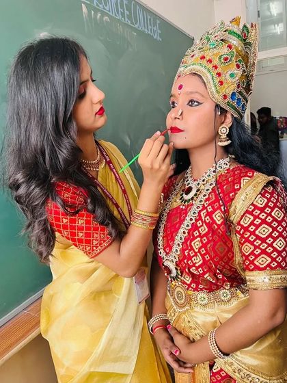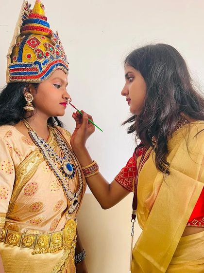 I do detailed character makeup for stage and photoshoots, with a focus on goddess transformations and matching traditional accessories for dance and cultural events.