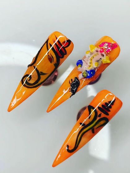 Nail Art & Extensions - Bridal nails with stones, blooming gel nail extensions, 3D Ganesha nail art – I teach and create it all.