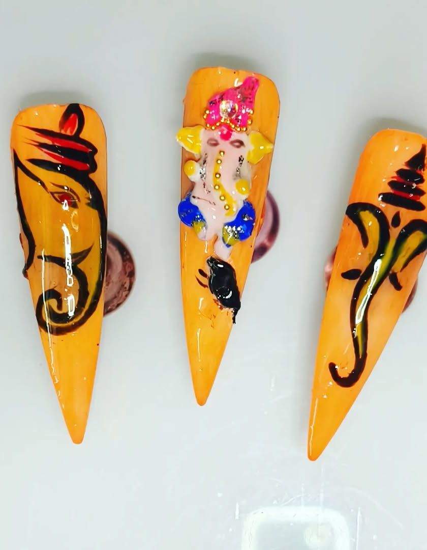 I love bringing ideas to life with free-hand drawing and 3D sculptures on nails. Whether you want a unique design for a festival like my popular Ganesha art, or something fun and personal, I can create it for you.