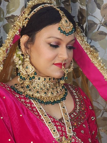 Brides seeking professional, long-lasting makeup for their wedding day, who value attention to detail and personalized service. Ideal for those wanting traditional Indian bridal looks or modern, sophisticated styles.