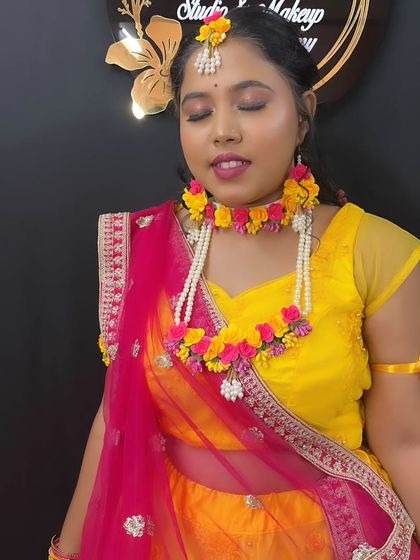 For Haldi and Mehendi ceremonies, I create fresh, vibrant, and water-resistant makeup that lets your natural glow shine through. I pair the look perfectly with floral jewelry and bright outfits, ensuring you look picture-perfect for these fun-filled events.
