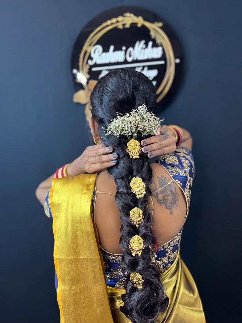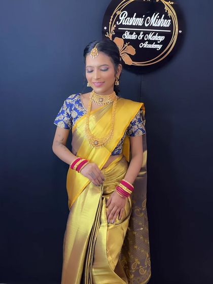 I love the elegance of South Indian bridal traditions, from the rich Kanjeevaram sarees to the beautiful temple jewelry. My expertise includes creating a radiant, long-lasting base and traditional hairstyles adorned with fresh flowers.