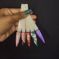 This is where I showcase my passion for detailed, hand-painted nail art for festivals like Navratri and Ganesh Utsav. Each design, from Mata Rani portraits to Garba dancers, is meticulously drawn by hand to capture the spirit of the celebration.