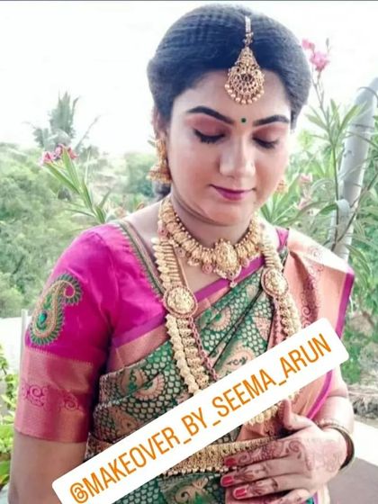 South Indian Bridal Expert - Love doing HD makeup for muhurtham and reception, plus perfect Kanchipuram saree draping.