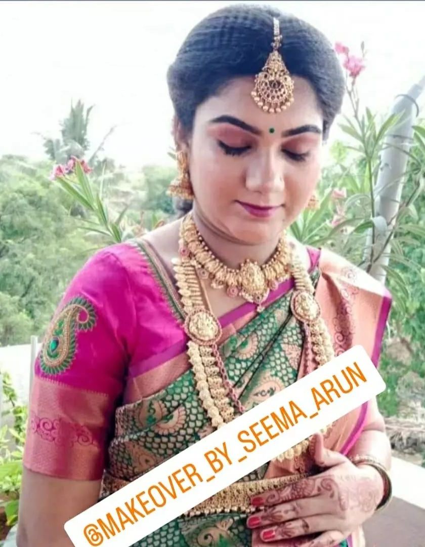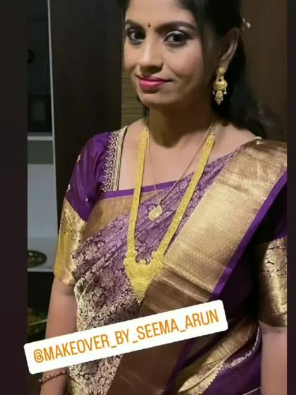 From baby showers and housewarmings to festive celebrations, I provide complete packages including makeup, hairstyling, and professional saree draping. I have extensive experience with silk sarees and traditional South Indian accessories like temple jewellery and fresh flowers.