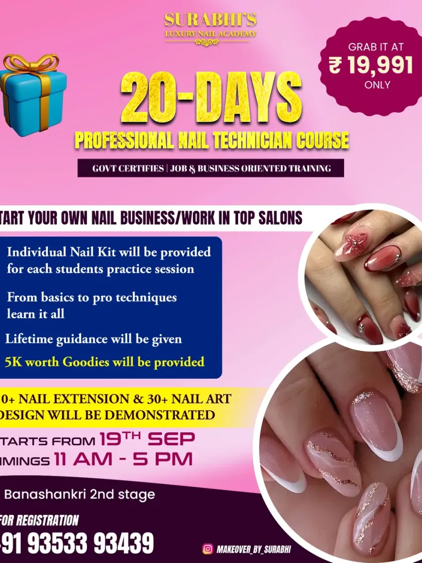 This is where theory meets practice. You will get extensive hands-on training using professional tools and your own individual nail kit, ensuring you build real, salon-ready skills from day one. I focus on practical application so you leave with confidence.