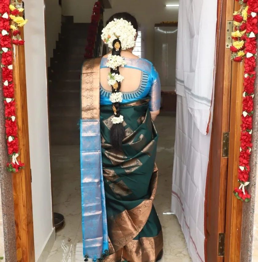 My services include a range of hairstyles to complete your look, from traditional South Indian braids adorned with fresh jasmine (malli poo) to modern updos and soft waves. I can create intricate braided styles with floral accessories or elegant buns perfect for any celebration.
