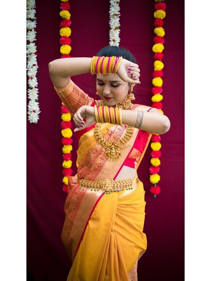I specialize in creating looks for traditional events like pujas, muhurthams, and wedding functions. I customize the makeup, hair, and saree draping to match the occasion and your personal style, whether you prefer a classic or contemporary feel. This section showcases a variety of looks from vibrant festive styles to elegant ceremony attire.