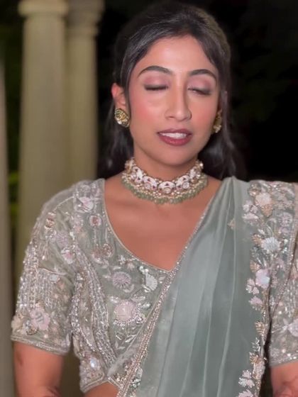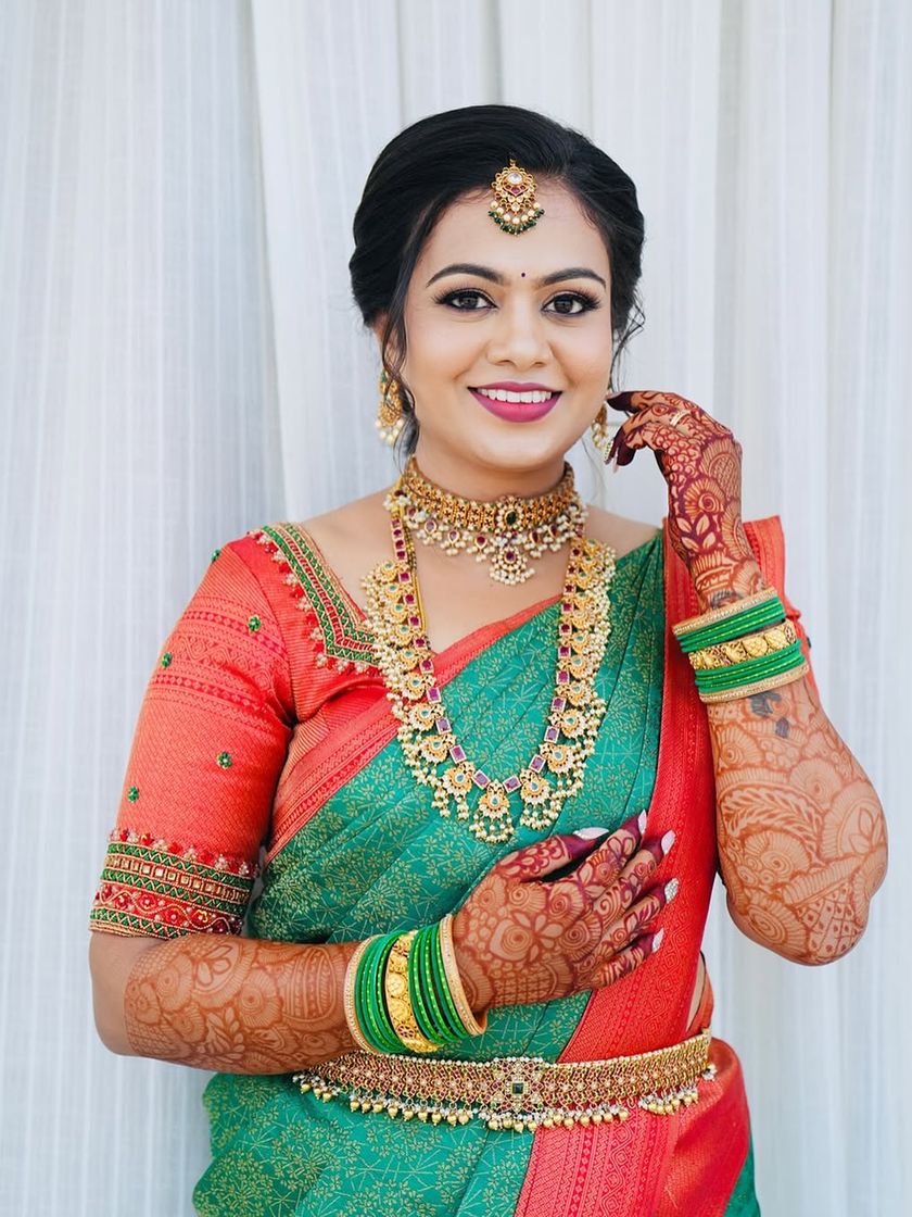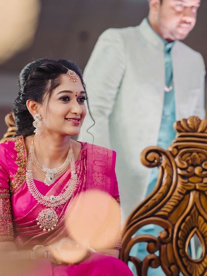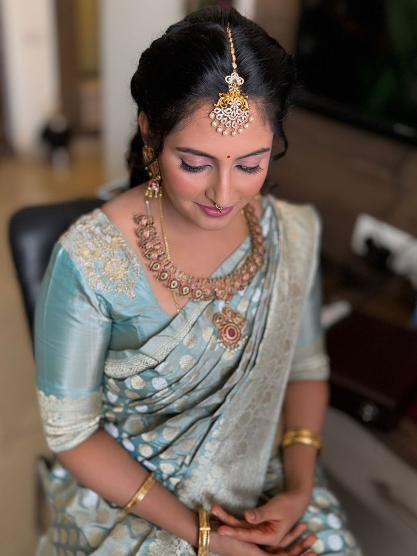 I specialize in creating timeless looks for the main wedding day. My goal is a minimal, skin-like finish that enhances your features and lasts through all the ceremonies, perfectly complementing your beautiful Kanchipuram silk saree and temple jewellery.