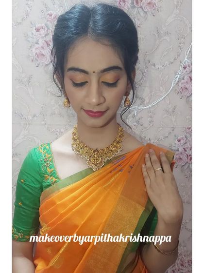 Hey! I'm Arpitha Gowda, certified makeup artist, chilling in Bangalore but Tumkur is also my turf. Makeup for me is not about covering up, it's about making you feel fab, just as you are. I keep trying new hairstyles, sometimes they flop, sometimes they rock! What I love? That smile on a bride's face or making a mom-to-be glow for her Seemantha. Being part of your big days, that's my jam.