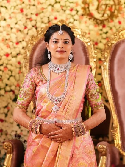 I do natural, waterproof bridal makeup, hairstyles, and saree draping for all your wedding events, using trusted products and custom looks for each function.