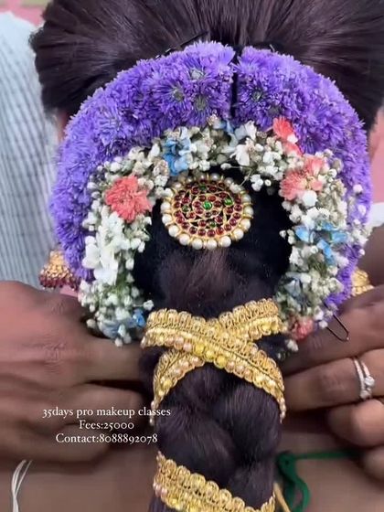 For brides, I take care of everything - pre-wedding, wedding, reception. You want a classic South Indian poola jada (braided floral hair), a glam North Indian lehenga look, or just a simple wedding day look - I’ll sort it out. When a bride looks radiant, tumba khushi aagutte (I feel so happy).