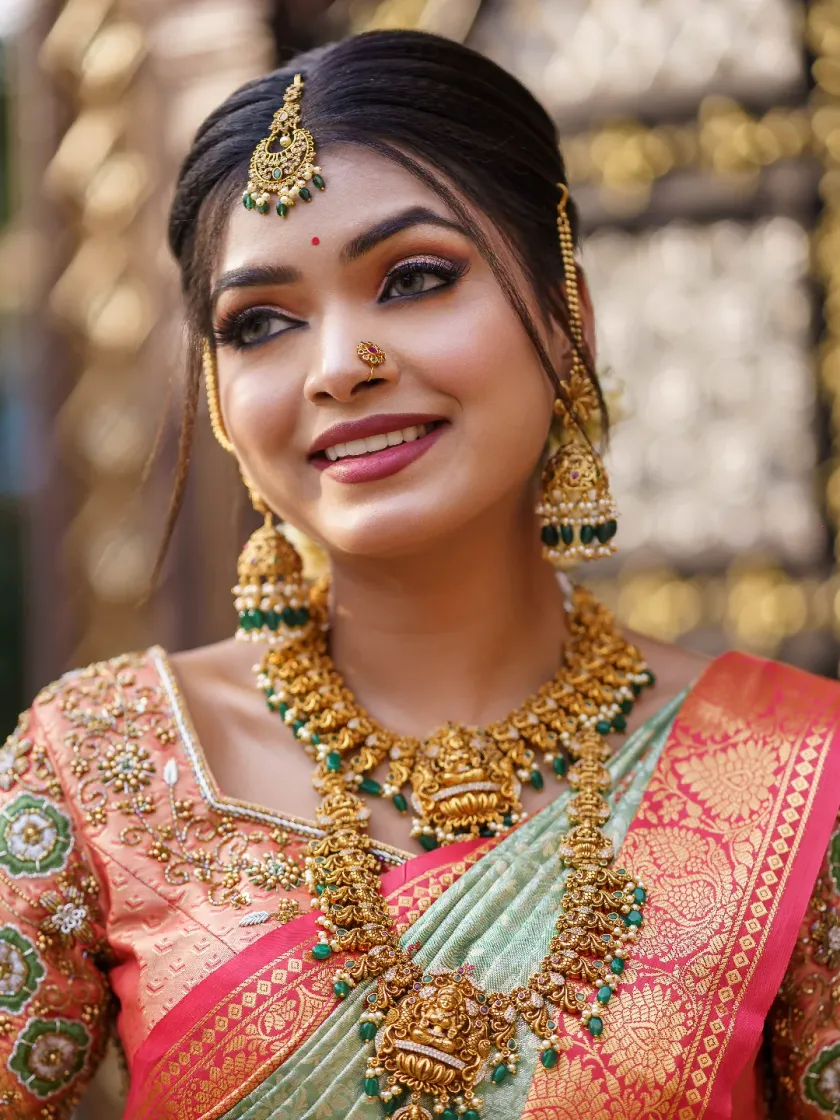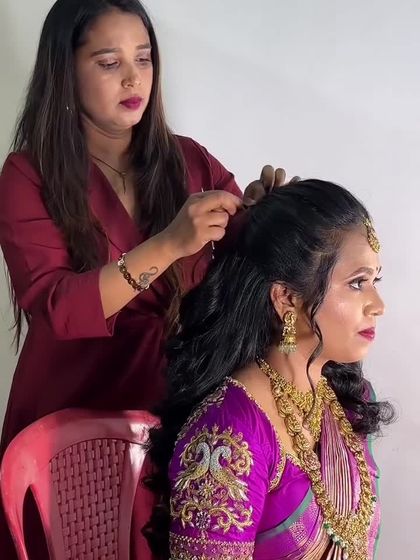 I specialize in creating timeless looks for South Indian brides, from the muhurtham to the reception. Whether you want a classic temple jewellery look with a silk saree or a modern interpretation, I ensure your makeup is flawless, long-lasting, and perfect for both in-person and on-camera moments. This includes expert saree draping and traditional hairstyling like the beautiful poola jada.