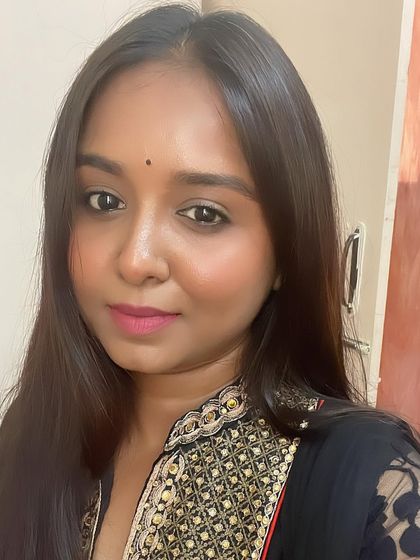 Hey! I’m Ramya. Makeup for me is pure celebration, especially for brides and moms-to-be. I got trained by the best, even got my masterclass certificate, but honestly, it’s that happy smile after I finish a look that keeps me going. Once, a bride loved her look so much, she did her mom’s makeup too - moments like that, wow! When I’m not with my brushes, you’ll find me trekking or chasing sunsets. Betta, gudda, moda haagu naanu - hills, clouds, and me, that’s my peace.