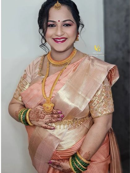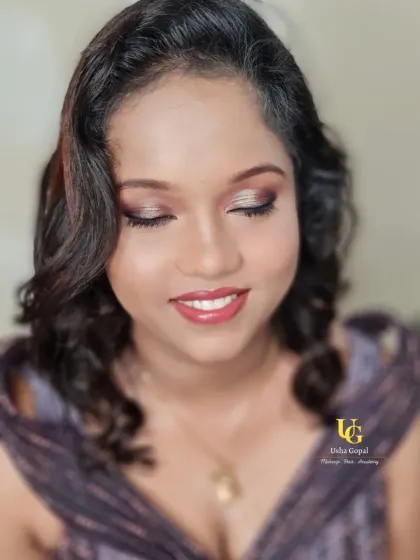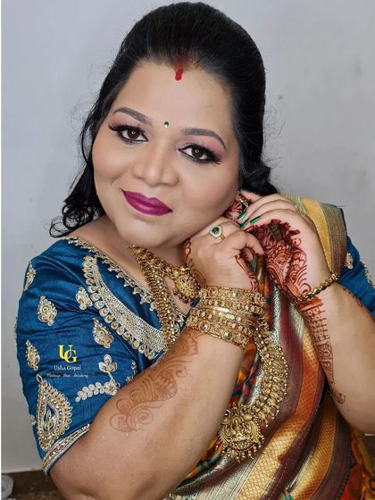 Hi, I'm Usha Gopal. Makeup and hair is my way of joining your celebrations, big or small. I get to meet brides for their muhurtham, moms at naming ceremonies, and folks who want all-out color or just a simple glow. Some clients trust me just by seeing my work online, even before meeting me. That trust means so much. When I see your happy smile at the end, I feel like I’m part of your family’s journey.