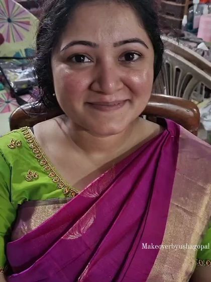 Hi, I'm Usha Gopal. Makeup and hair is my way of joining your celebrations, big or small. I get to meet brides for their muhurtham, moms at naming ceremonies, and folks who want all-out color or just a simple glow. Some clients trust me just by seeing my work online, even before meeting me. That trust means so much. When I see your happy smile at the end, I feel like I’m part of your family’s journey.
