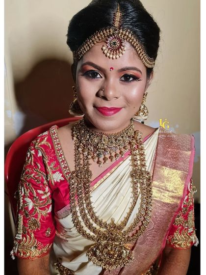 A handpicked selection of my favorite bridal transformations. This is where you can see the range of my work, from classic South Indian Muhurtham looks to glamorous reception styles and soft, natural makeup. Each look is created with love to make my brides feel absolutely beautiful on their special day.