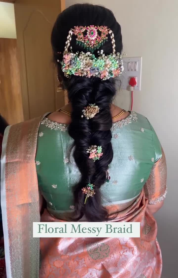 Your hairstyle completes the look. I create a variety of styles, including intricate traditional braids with fresh flowers for silk sarees, modern messy buns, and romantic curls for lehengas and gowns.