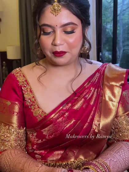 Hey, I’m Ramya. Been doing bridal makeup in Bangalore since 2014. I started Kumkum because I wanted to show folks makeup isn’t a mask, it’s your own glow. I love seeing brides happy, whether it’s for varpooje or cocktail. Teaching’s a joy too - from one-on-one classes to those fun Navratri hair tutorials. Let’s keep it simple, chennagi bandide (looks good), no stress, just you shining.