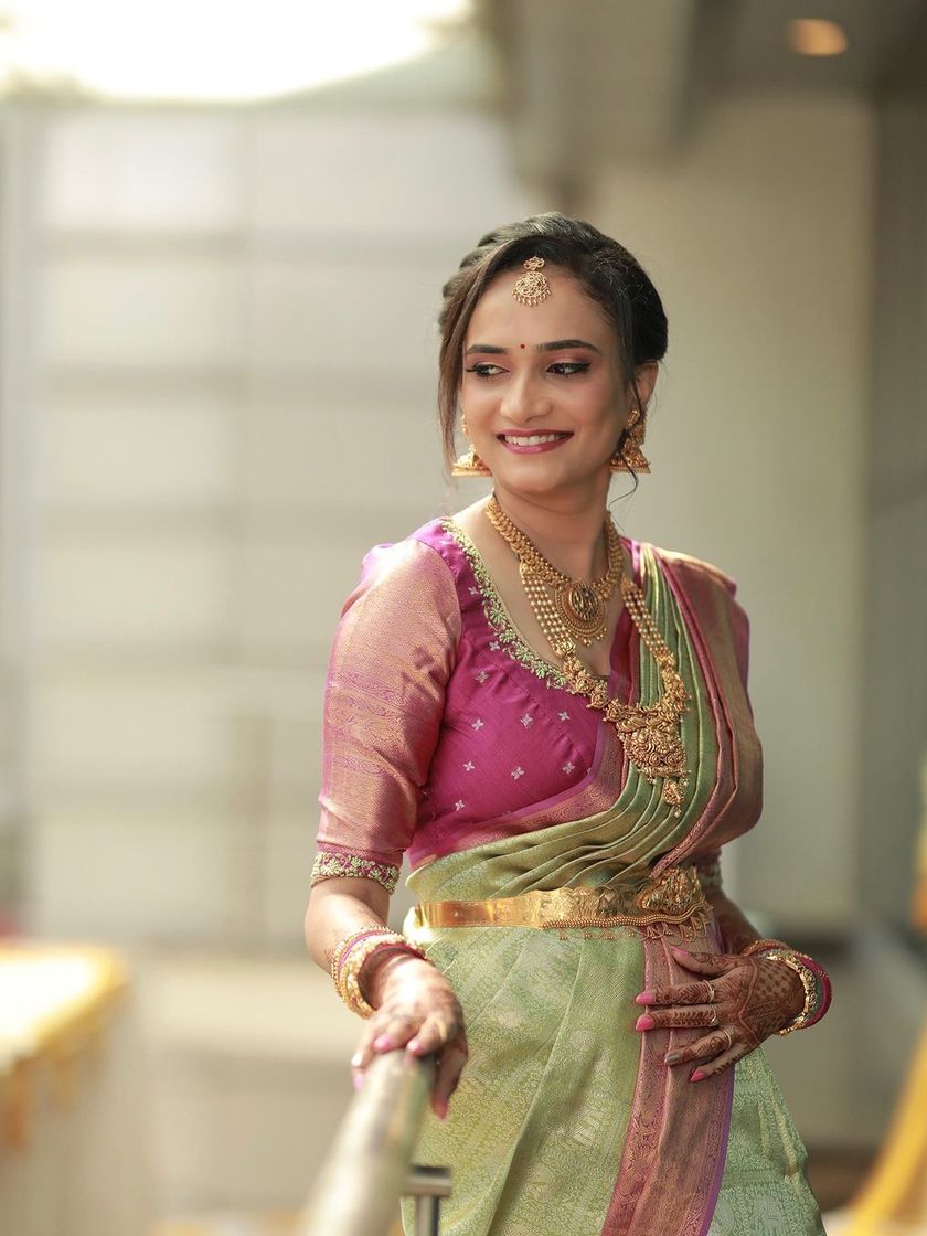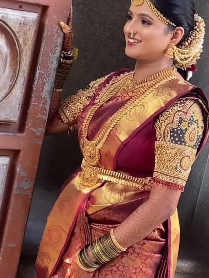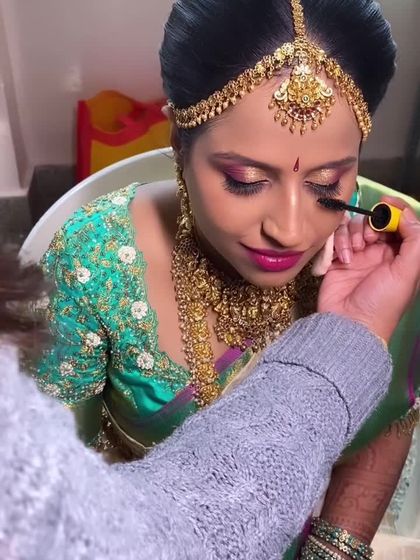 This is a handpicked collection of my favorite bridal transformations. It showcases the variety of looks I love to create, from the timeless South Indian muhurtham bride to the glamorous reception look, all designed to make you feel confident and beautiful on your big day.