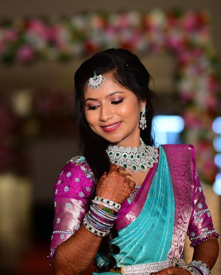 I specialize in creating timeless looks for traditional South Indian ceremonies. Whether you are wearing a classic Kanjivaram or a modern silk saree, I use HD makeup to create a flawless base that lasts through long events and looks stunning with temple jewellery.