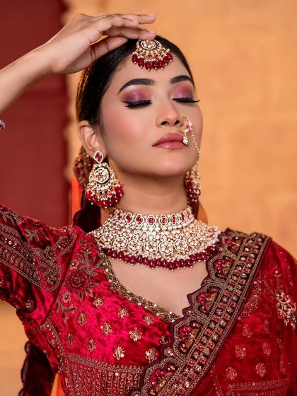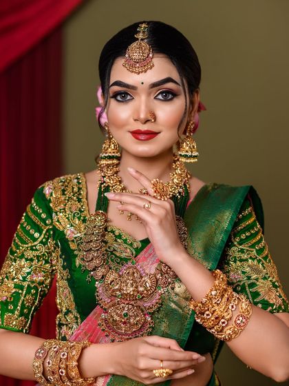 We do bridal and event makeup that lasts all day, is waterproof, suits every ceremony, and includes hair styling and saree or lehenga draping.