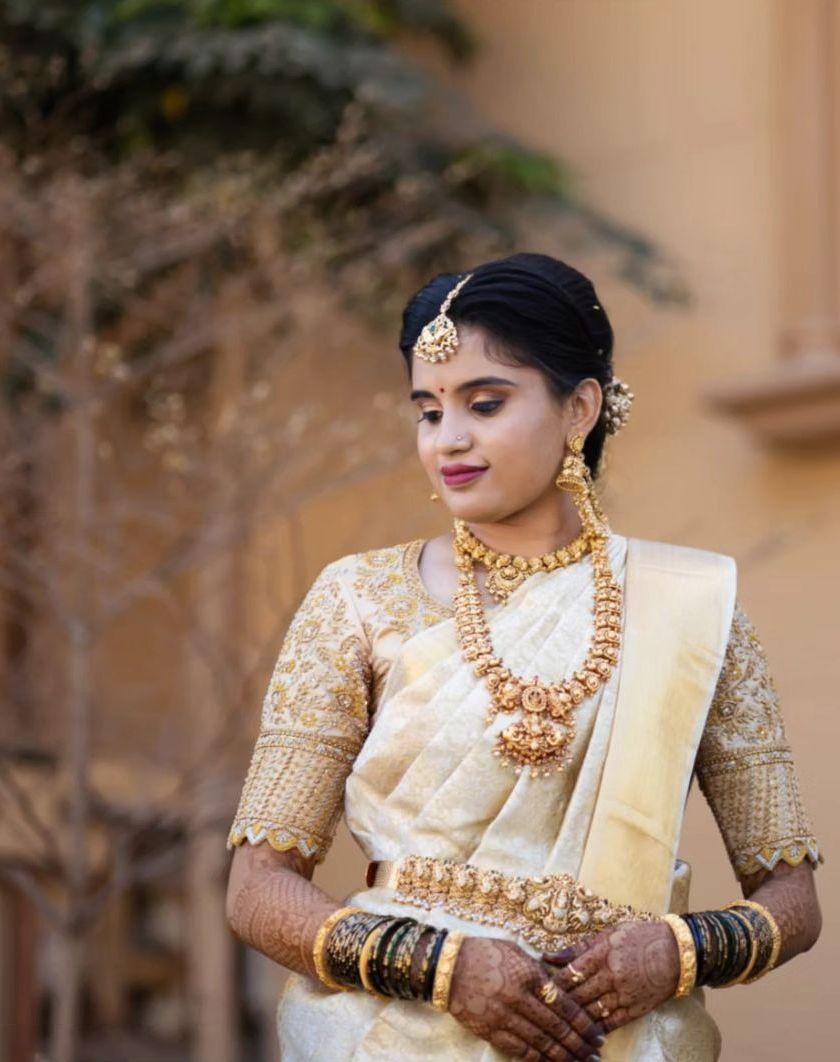 My specialty is creating timeless looks for the main wedding ceremony. I focus on a radiant, long-lasting base that complements traditional Kanchivaram sarees and temple jewellery, ensuring you look flawless for the most important moments.