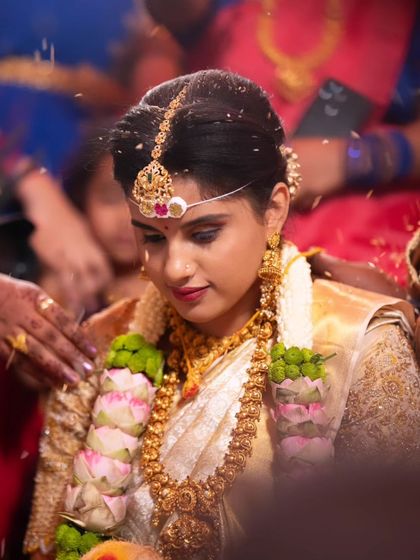 I specialize in traditional South Indian bridal makeup, creating authentic looks that honor cultural aesthetics. My expertise includes detailed work with silk sarees, intricate henna designs, and traditional gold jewelry styling.