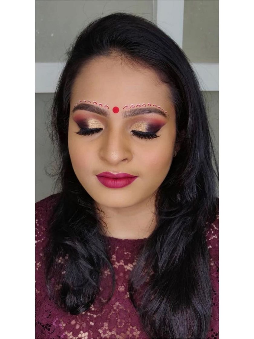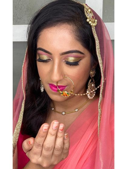 I love celebrating the unique beauty of different cultures. I create authentic Muslim bridal looks with dramatic glittery eyes and rich lips, as well as elegant Bengali bridal makeup featuring traditional Chandan art and bold, beautiful eyes.