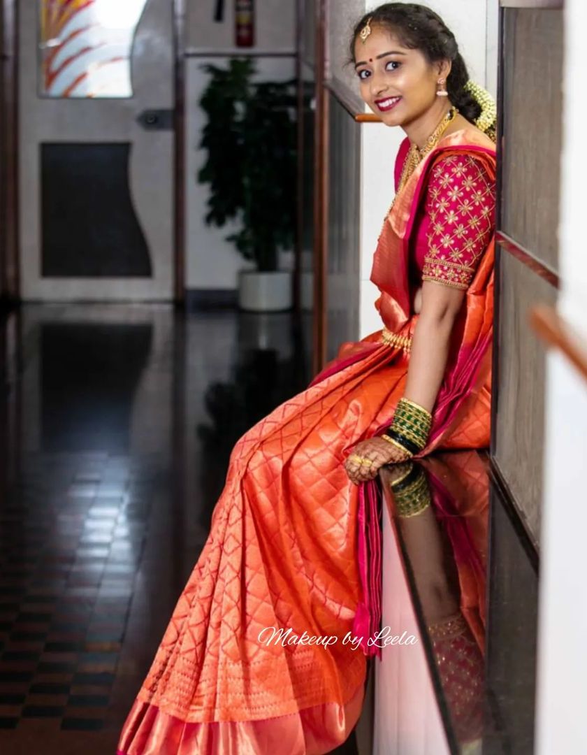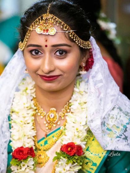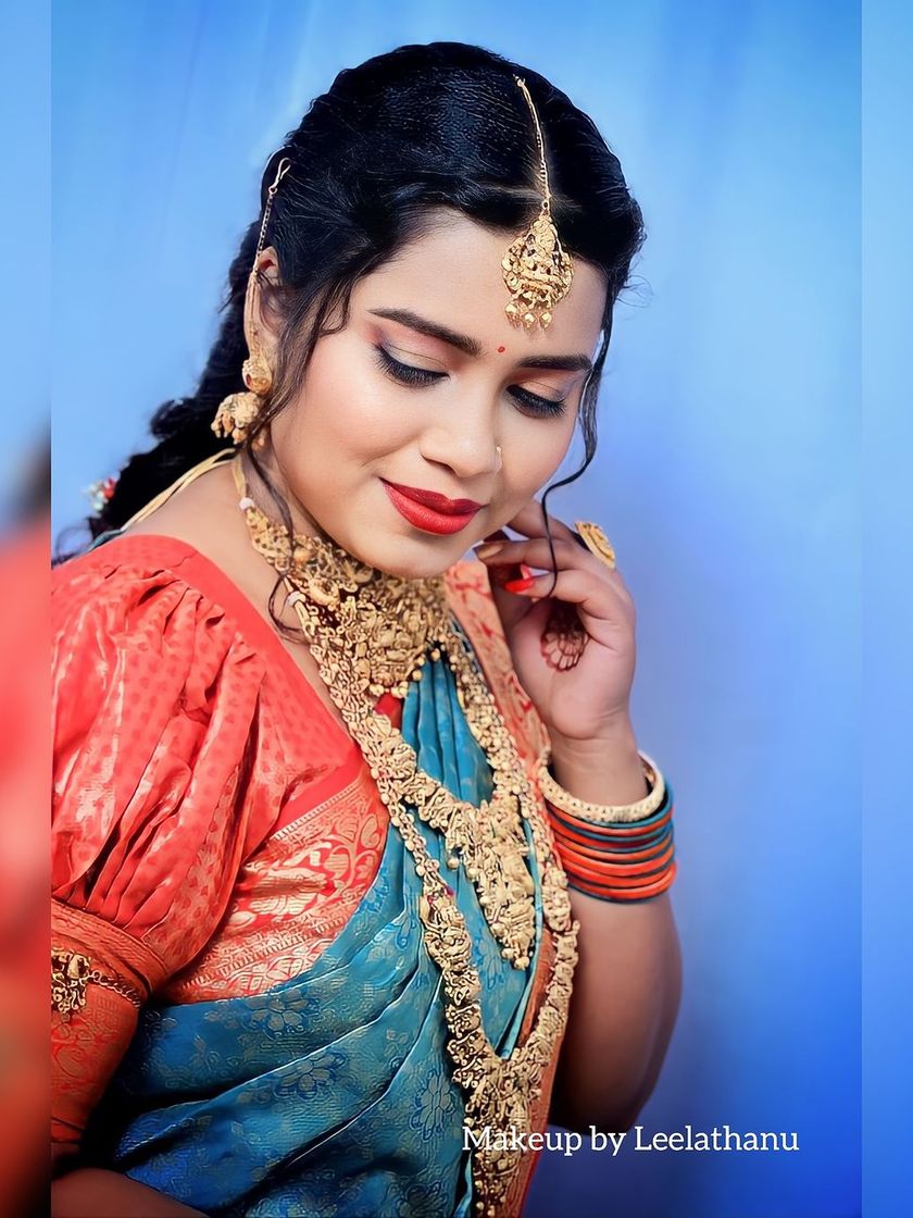 This is my specialty. I create timeless and radiant looks for the main wedding ceremony. My focus is on flawless, long-lasting makeup that looks beautiful in person and in photos, perfectly complementing traditional Kanjeevaram sarees and gold temple jewelry.